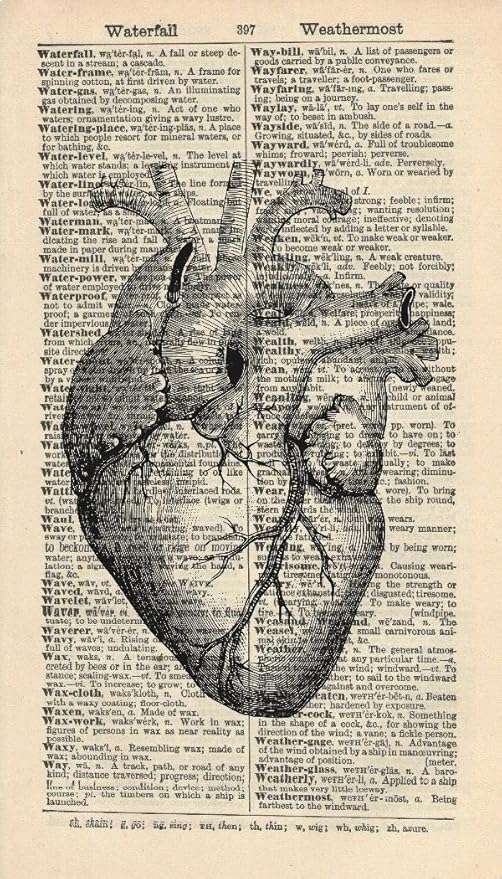 A scientific diagram of an anatomical heart is depicted in black and white on a page from a vintage book.